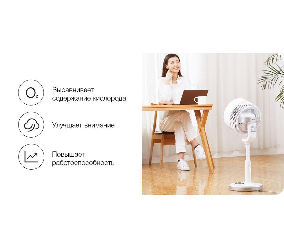 Работа в непроветриваемых помещениях может быстро вызвать усталость и потерю внимания, связанные с кислородным голоданием. Циркуляция воздуха способствует восполнению запасов кислорода, благодаря чему можно быстро восстановить хорошее самочувствие справиться с любой задачей.
