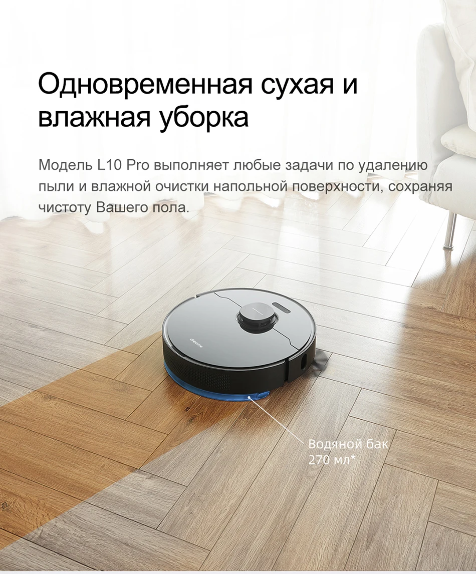 Для поддержания беспыльного пола требуется регулярное пылесосное и моющее устройство, которое L10 Pro может сделать