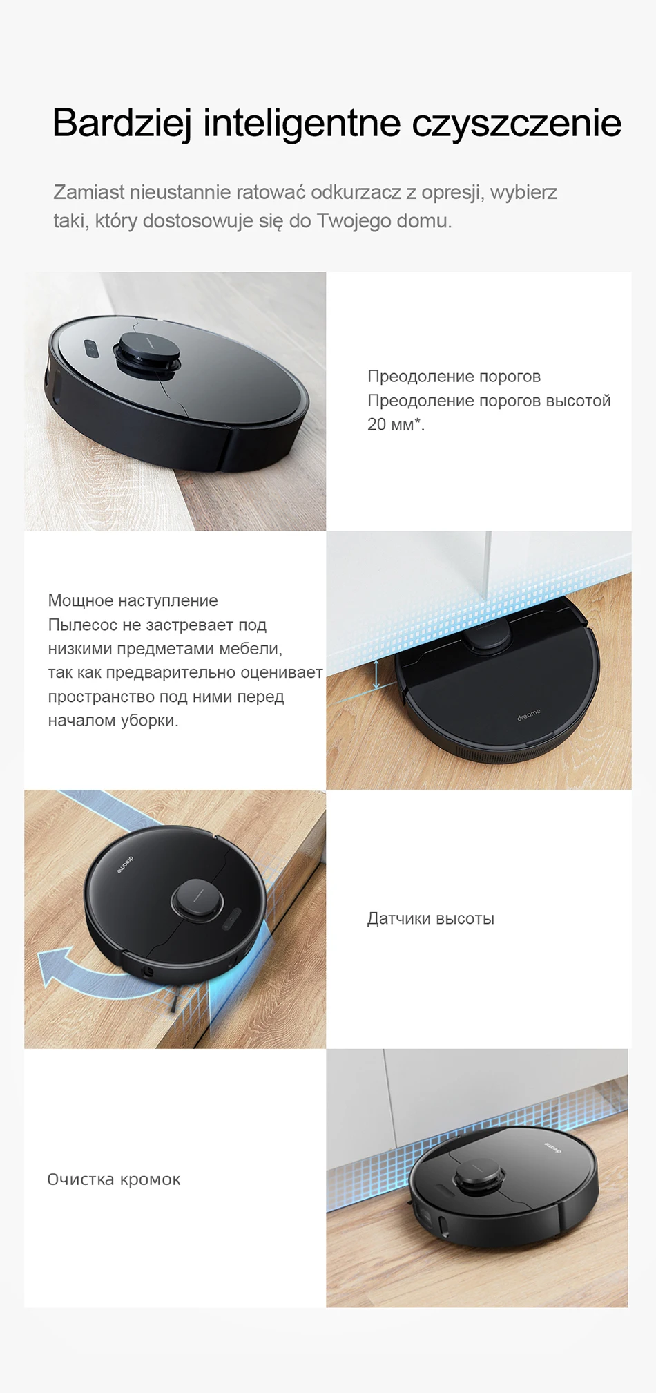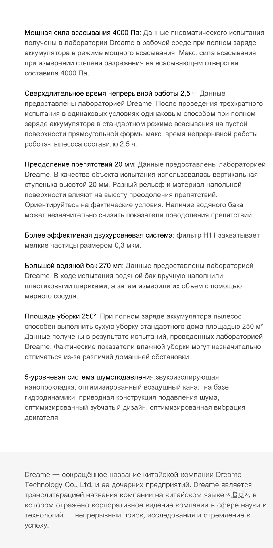 Пылесос и швабра в одном | 4-ступенчатая система очистки | 2.5h Plus Автоматическая подзарядка | 4, сильное всасывание 000pa | Резервуар для воды 270 мл | Пересекает барьер 20мм | 5-слойная система шумоподавления