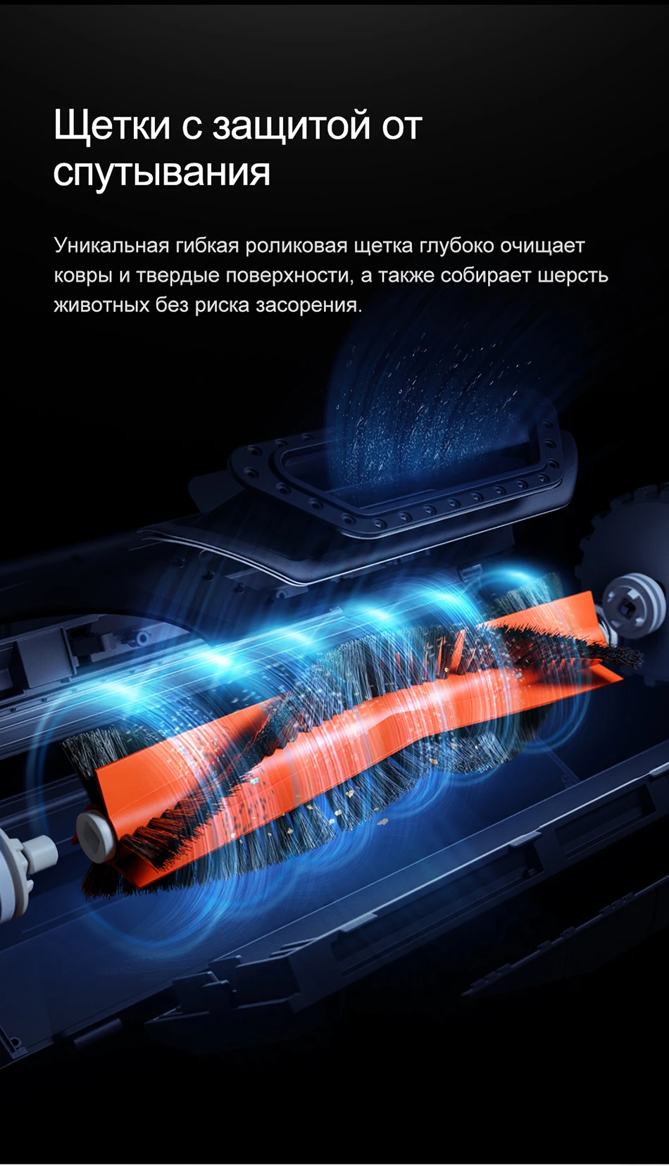 Уникальный гибкий рулон кисти глубоко очищает ковры и жесткие полы, захватывает скрытые волосы домашних животных, не засоряясь